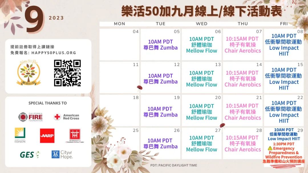 9月是全美急难防灾月(National Preparedness Month), 乐活50加订于9月29日举办一场由加州消防基金会(California Fire Foundation)支持的线下讲座: